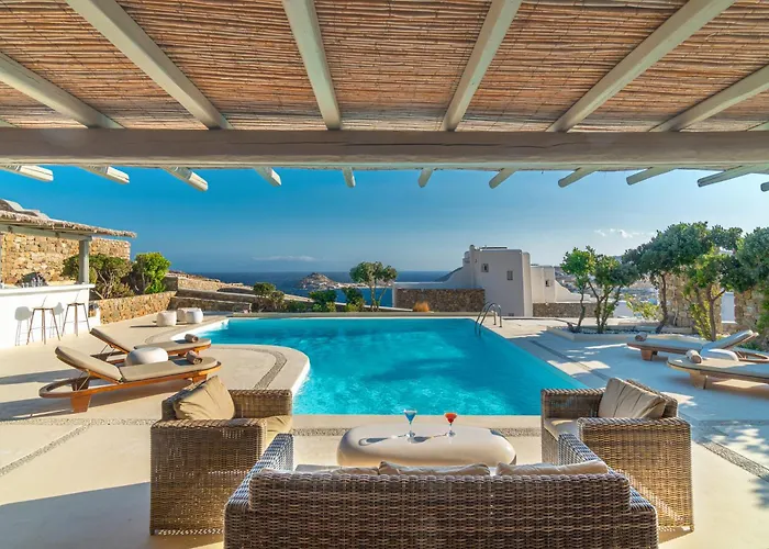 Located 50 metres from Kalafati, the unique Thalasses Villas Kalafatis apartment offers modern comforts like Wi-Fi and essentials like a car park. Windsurf Centre Mykonos Windsurfing Store is situated 2.1 km away, and the energetic Kalafati Beach is 2.1 km from the apartment.